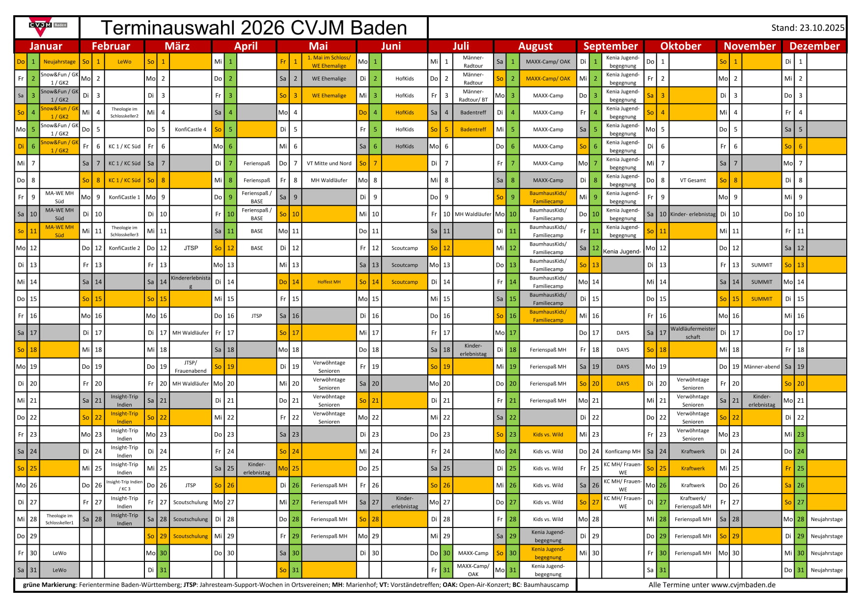 Jahreskalender 2025 als Excel